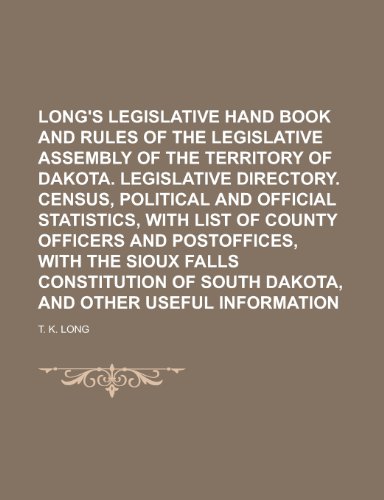 Long's legislative hand book and rules of the legislative assembly of the Territory of Dakota. Legislative directory. Census, political and official ... and postoffices, with the Sioux Falls full version
