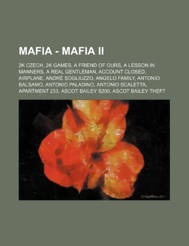 You are about to access our book library "Mafia - Mafia II: 2k Czech, 2k Games, a Friend of Ours, a Lesson in Manners, a Real Gentleman, Account Closed, Airplane, Andre Sogliuzzo, Angelo Family, Antonio Balsamo, Antonio Paladino, Antonio Scaletta, Apartment 233, Ascot Bailey S200, Ascot Bailey... full version"