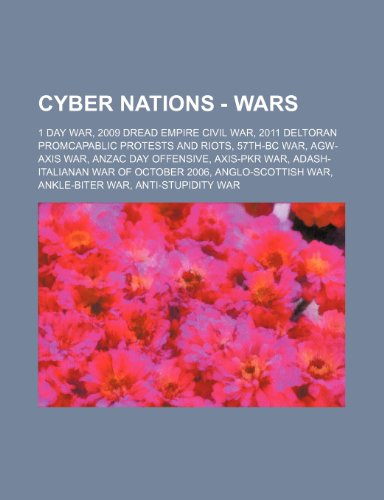 You are about to access our book library "Cyber Nations - Wars: 1 Day War, 2009 Dread Empire Civil War, 2011 Deltoran Promcapablic Protests and Riots, 57th-BC War, Agw-Axis War, Anzac Day Offensive, Axis-Pkr War, Adash-Italianan War of October 2006, Anglo-Scottish War, Ankle-Biter War, Anti-St... full version"