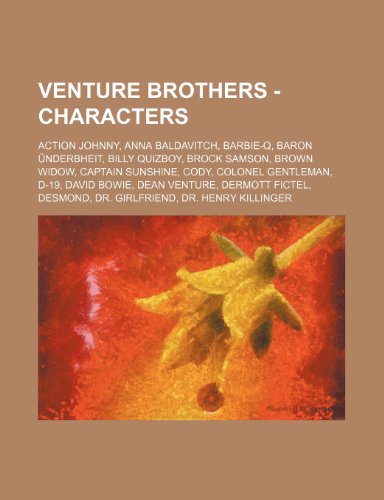 You are about to access our book library "Venture Brothers - Characters: Action Johnny, Anna Baldavitch, Barbie-Q, Baron Underbheit, Billy Quizboy, Brock Samson, Brown Widow, Captain Sunshine, Cody, Colonel Gentleman, D-19, David Bowie, Dean Venture, Dermott Fictel, Desmond, Dr. Girlfriend, Dr... full version"