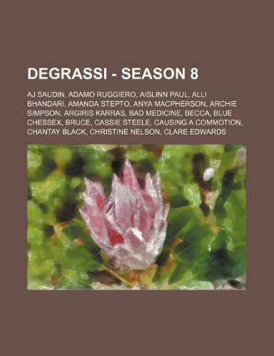 You are about to access our book library "Degrassi - Season 8: Aj Saudin, Adamo Ruggiero, Aislinn Paul, Alli Bhandari, Amanda Stepto, Anya MacPherson, Archie Simpson, Argiris Karras, Bad Medicine, Becca, Blue Chessex, Bruce, Cassie Steele, Causing a Commotion, Chantay Black, Christine Nelson, ... full version"