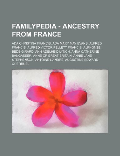 You are about to access our book library "Familypedia - Ancestry from France: ADA Christina Francis, ADA Mary May Evans, Alfred Francis, Alfred Victor Pellett Francis, Alphonse Bede Girard, Ann Adelheid Lynch, Anna Catherine Bangasser, Anne of Great Britain, Annie Jane Stephenson, Antoine L'An... full version"