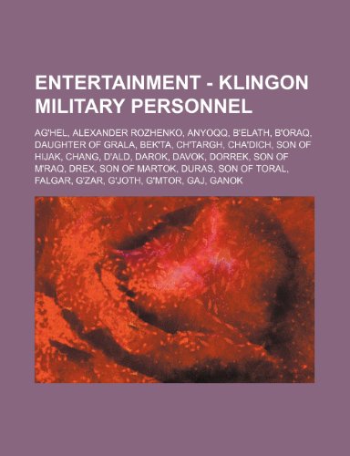 You are about to access our book library "Entertainment - Klingon Military Personnel: AG'Hel, Alexander Rozhenko, Anyoqq, B'Elath, B'Oraq, Daughter of Grala, Bek'ta, Ch'targh, Cha'dich, Son of Hijak, Chang, D'Ald, Darok, Davok, Dorrek, Son of M'Raq, Drex, Son of Martok, Duras, Son of Toral full version"