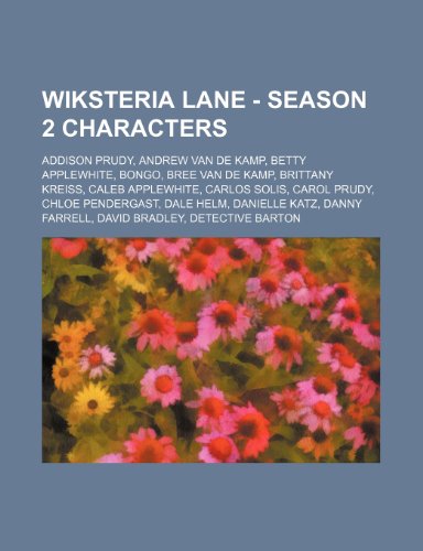 You are about to access our book library "Wiksteria Lane - Season 2 Characters: Addison Prudy, Andrew Van de Kamp, Betty Applewhite, Bongo, Bree Van de Kamp, Brittany Kreiss, Caleb Applewhite, Carlos Solis, Carol Prudy, Chloe Pendergast, Dale Helm, Danielle Katz, Danny Farrell, David Bradley, ... full version"