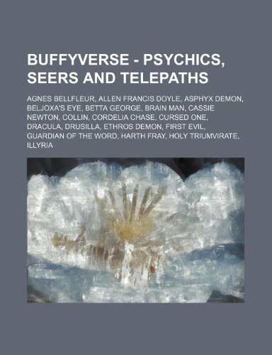 You are about to access our book library "Buffyverse - Psychics, Seers and Telepaths: Agnes Bellfleur, Allen Francis Doyle, Asphyx Demon, Beljoxa's Eye, Betta George, Brain Man, Cassie Newton, Collin, Cordelia Chase, Cursed One, Dracula, Drusilla, Ethros Demon, First Evil, Guardian of the Word... full version"