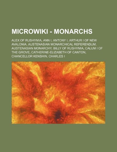 You are about to access our book library "Micro - Monarchs: Alex of Rushymia, Ann I, Antony I, Arthur I of New Avalonia, Austenasian Monarchical Referendum, Austenasian Monarchy, Billy of Rushymia, Calum I of the Grove, Catherine-Elizabeth of Canton, Chancellor Kenshin, Charles I, Christopher ... full version"