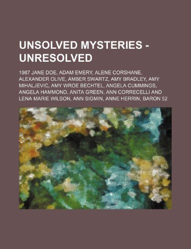 You are about to access our book library "Unsolved Mysteries - Unresolved: 1987 Jane Doe, Adam Emery, Alene Corshane, Alexander Olive, Amber Swartz, Amy Bradley, Amy Mihaljevic, Amy Wroe Bechtel, Angela Cummings, Angela Hammond, Anita Green, Ann Correcelli and Lena Marie Wilson, Ann Sigmin, Anne full version"