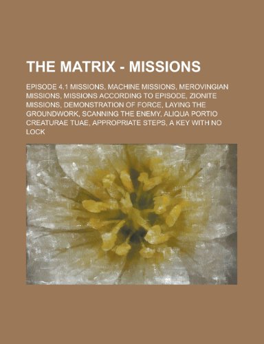 You are about to access our book library "The Matrix - Missions: Episode 4.1 Missions, Machine Missions, Merovingian Missions, Missions According to Episode, Zionite Missions, Demonstration of Force, Laying the Groundwork, Scanning the Enemy, Aliqua Portio Creaturae Tuae, Appropriate Steps, a ... full version"