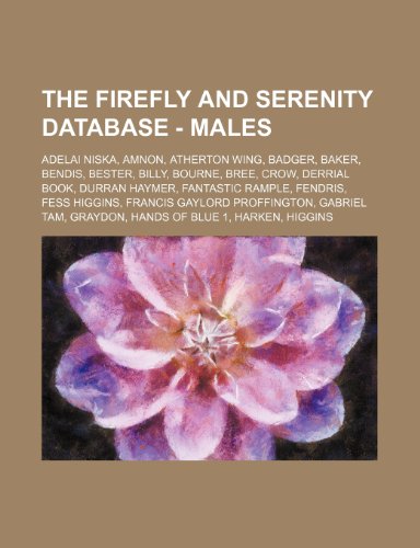 You are about to access our book library "The Firefly and Serenity Database - Males: Adelai Niska, Amnon, Atherton Wing, Badger, Baker, Bendis, Bester, Billy, Bourne, Bree, Crow, Derrial Book, Durran Haymer, Fantastic Rample, Fendris, Fess Higgins, Francis Gaylord Proffington, Gabriel Tam, Graydo full version"