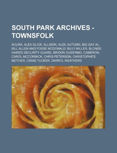 You are about to access our book library "South Park Archives - Townsfolk: Acura, Alex Glick, Allison, Audi, Autumn, Big Gay Al, Bill Allen and Fosse McDonald, Billy Miller, Blonde Haired Security Guard, Bridon Gueermo, Cameron, Carol McCormick, Chris Peterson, Christophe's Mother, Craig Tucker, full version"