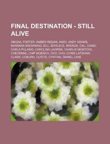 You are about to access our book library "Final Destination - Still Alive: Abigail Foster, Amber Regan, Andy, Andy Adams, Barbara Browning, Bill, Borlace, Brenda, Cal, Candi, Carla Pulaski, Carolina Lavirra, Charlie Montoya, Cheyenne, Chip Moench, Cho, Cho, Chris Latshaw, Clark, Coburn, Curtis, C full version"