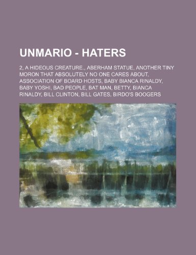 You are about to access our book library "Unmario - Haters: 2, a Hideous Creature., Aberham Statue, Another Tiny Moron That Absolutely No One Cares About, Association of Board Hosts, Baby Bianca Rinaldy, Baby Yoshi, Bad People, Bat Man, Betty, Bianca Rinaldy, Bill Clinton, Bill Gates full version"
