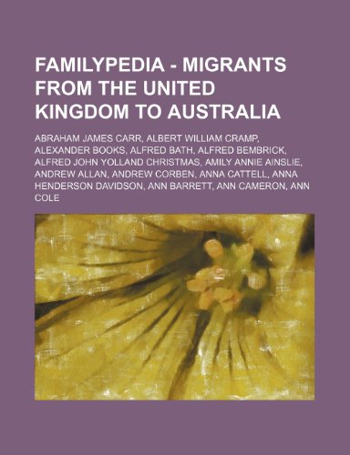 You are about to access our book library "Familypedia - Migrants from the United Kingdom to Australia: Abraham James Carr, Albert William Cramp, Alexander Books, Alfred Bath, Alfred Bembrick, Alfred John Yolland Christmas, Amily Annie Ainslie, Andrew Allan, Andrew Corben, Anna Cattell, Anna Hende full version"