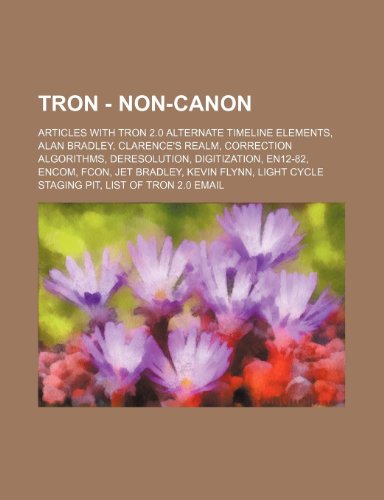 You are about to access our book library "Tron - Non-Canon: Articles with Tron 2.0 Alternate Timeline Elements, Alan Bradley, Clarence's Realm, Correction Algorithms, Deresolution, Digitization, En12-82, Encom, Fcon, Jet Bradley, Kevin Flynn, Light Cycle Staging Pit, List of Tron 2.0 Email, List full version"