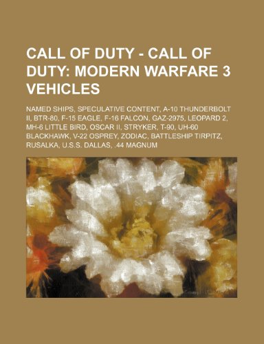 You are about to access our book library "Call of Duty - Call of Duty: Modern Warfare 3 Vehicles: Named Ships, Speculative Content, A-10 Thunderbolt II, Btr-80, F-15 Eagle, F-16 Falcon, Gaz-2975, Leopard 2, Mh-6 Little Bird, Oscar II, Stryker, T-90, Uh-60 Blackhawk, V-22 Osprey, Zodiac, Battleshi full version"
