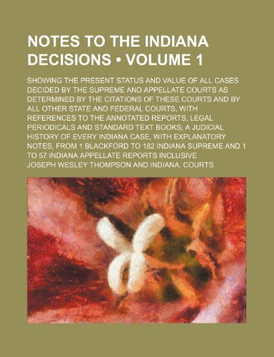 Notes to the Indiana Decisions (Volume 1); Showing the Present Status and Value of All Cases Decided by the Supreme and Appellate Courts as Determined full version
