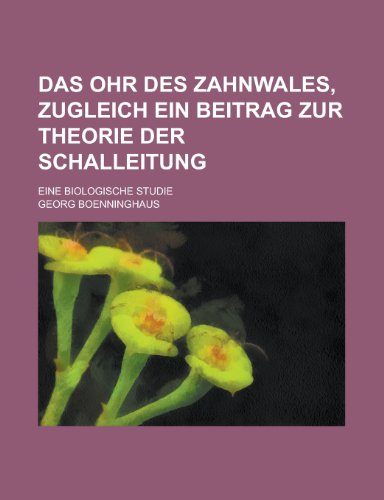 Das Ohr Des Zahnwales, Zugleich Ein Beitrag Zur Theorie Der Schalleitung; Eine Biologische Studie full version