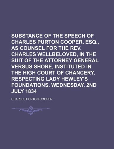 Substance of the Speech of Charles Purton Cooper, Esq., as Counsel for the REV. Charles Wellbeloved, in the Suit of the Attorney General Versus Shore, full version