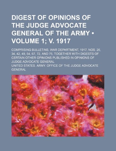 Digest of Opinions of the Judge Advocate General of the Army (Volume 1; V. 1917); Comprising Bulletins, War Department, 1917, Nos. 26, 34, 42, 49, 54, full version