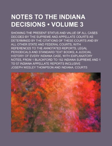 Notes to the Indiana Decisions (Volume 3); Showing the Present Status and Value of All Cases Decided by the Supreme and Appellate Courts as Determined full version