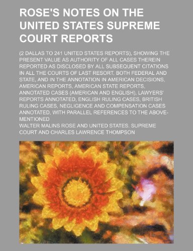 Rose's Notes on the United States Supreme Court Reports (Volume 14); (2 Dallas to 241 United States Reports), Showing the Present Value as Authority O full version