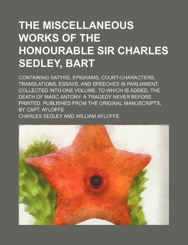 The Miscellaneous Works of the Honourable Sir Charles Sedley, Bart; Containing Satyrs, Epigrams, Court-Characters, Translations, Essays, and Speeches full version