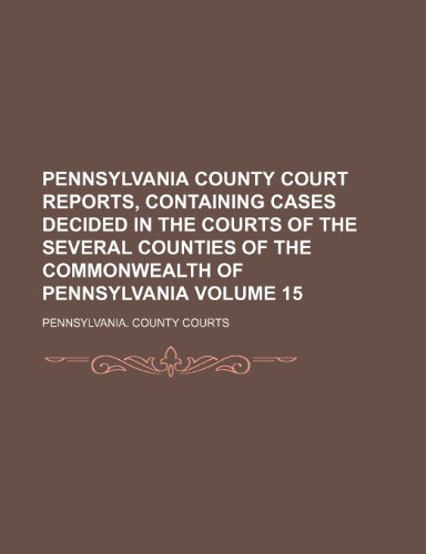 Pennsylvania County Court Reports, Containing Cases Decided in the Courts of the Several Counties of the Commonwealth of Pennsylvania Volume 15 full version