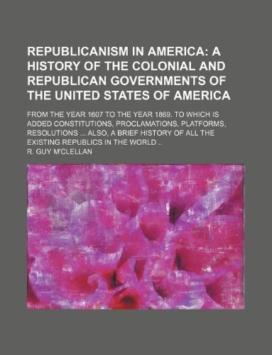 You are about to access our book library "Republicanism in America; a history of the colonial and republican governments of the United States of America. from the year 1607 to the year 1869. ... resolutions Also, a brief history of all the full version"
