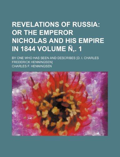 Revelations of Russia Volume N . 1; Or the Emperor Nicholas and His Empire in 1844. by One Who Has Seen and Describes [D. I. Charles Frederick Henning full version