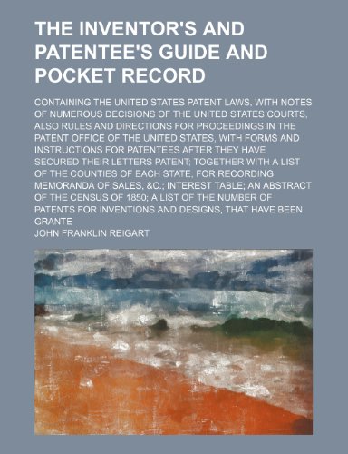 The Inventor's and Patentee's Guide and Pocket Record; Containing the United States Patent Laws, with Notes of Numerous Decisions of the United States full version