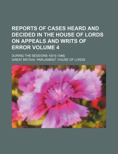 Reports of Cases Heard and Decided in the House of Lords on Appeals and Writs of Error Volume 4; During the Sessions 1831[-1846] full version