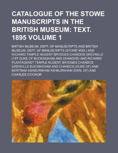 Catalogue of the Stowe Manuscripts in the British Museum Volume 1; Text. 1895 full version