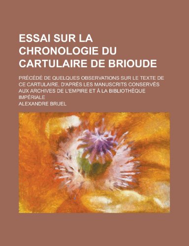 Essai Sur La Chronologie Du Cartulaire de Brioude; Precede de Quelques Observations Sur Le Texte de Ce Cartulaire, D'Apres Les Manuscrits Conserves Au full version