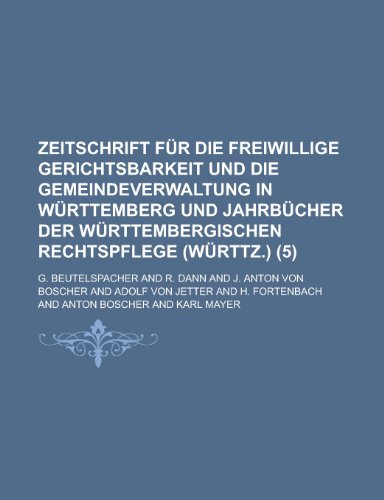 Zeitschrift Fur Die Freiwillige Gerichtsbarkeit Und Die Gemeindeverwaltung in Wurttemberg Und Jahrbucher Der Wurttembergischen Rechtspflege (Wurttz.) full version
