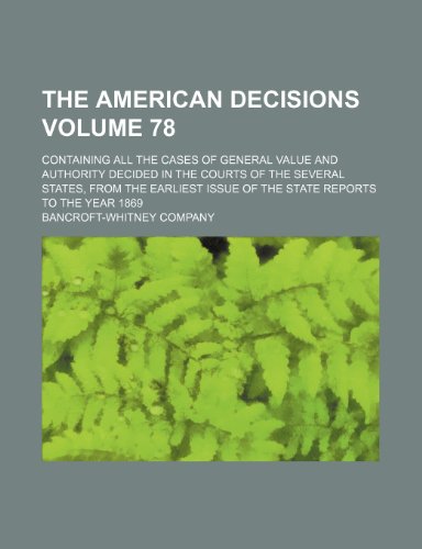 You are about to access our book library "The American decisions Volume 78; containing all the cases of general value and authority decided in the courts of the several states, from the earliest issue of the state reports to the year 1869 full version"
