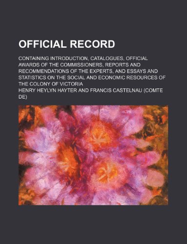 You are about to access our book library "Official record; containing introduction, catalogues, official awards of the commissioners, reports and recommendations of the experts, and essays and ... economic resources of the colony of Victoria full version"