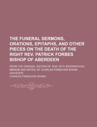 You are about to access our book library "The Funeral Sermons, orations, epitaphs, and other pieces on the death of the Right Rev. Patrick Forbes Bishop of Aberdeen; From the original edition ... and notes, by Charles Farquhar Shand advocate full version"