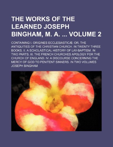 You are about to access our book library "The works of the learned Joseph Bingham, M. A. Volume 2; Containing I. Origines Ecclesiasticæ or, The antiquities of the Christian Church. In twenty ... parts. III. The French churches apology fo full version"