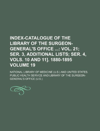 Index-catalogue of the Library of the Surgeon-General's Office Volume 19; vol. 21 ser. 3, additional lists ser. 4, vols. 10 and 11]. 1880-1895 full version