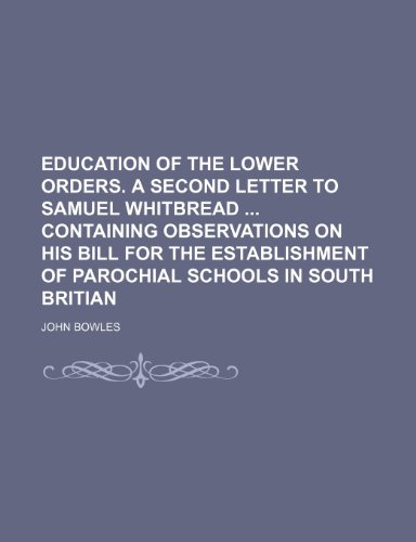 Education of the lower orders. A second letter to Samuel Whitbread containing observations on his bill for the establishment of parochial schools in south Britian full version