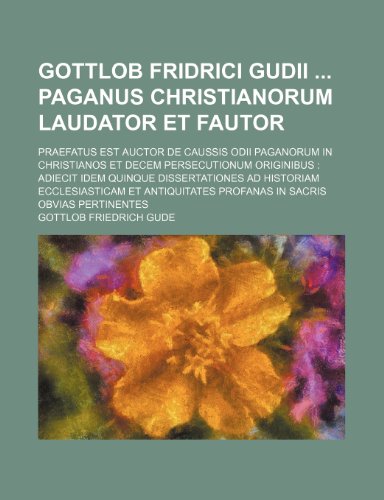 You are about to access our book library "Gottlob Fridrici Gudii Paganus Christianorum laudator et fautor; Praefatus est auctor de caussis odii Paganorum in Christianos et decem persecutionum ... dissertationes ad historiam ecclesiasticam et full version"