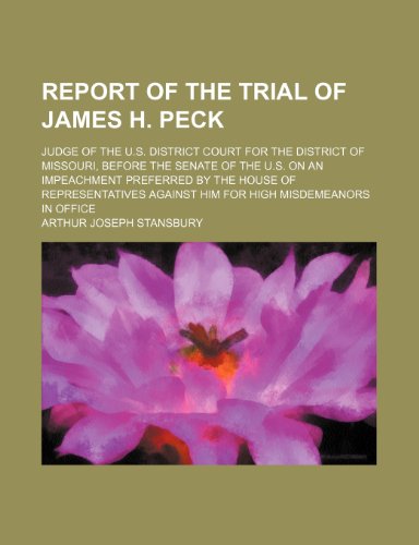 You are about to access our book library "Report of the trial of James H. Peck; judge of the U.S. district court for the district of Missouri, before the Senate of the U.S. on an impeachment ... against him for high misdemeanors in office full version"