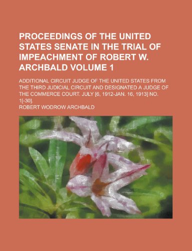 Proceedings of the United States Senate in the trial of impeachment of Robert W. Archbald; additional circuit judge of the United States from the ... of the Commerce court. July [6, Volume 1 full version