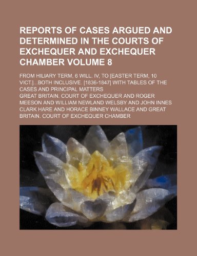 You are about to access our book library "Reports of cases argued and determined in the courts of Exchequer and Exchequer chamber Volume 8; from Hiliary term, 6 Will. IV, to [Easter term, 10 ... tables of the cases and principal matters full version"