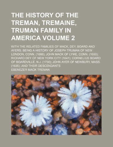 You are about to access our book library "The history of the Treman, Tremaine, Truman family in America Volume 2; with the related families of Mack, Dey, Board and Ayers being a history of ... (1680) Richard Dey of New York city (1641 full version"