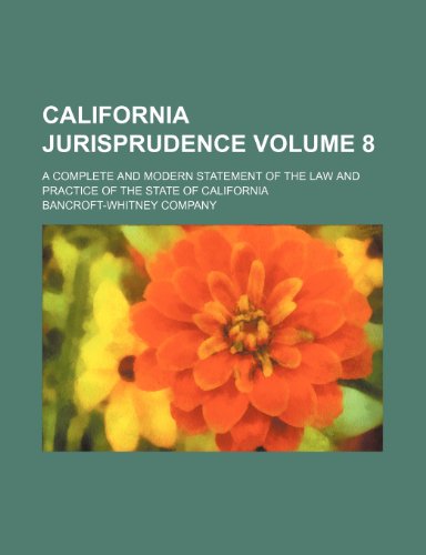 California jurisprudence Volume 8 ; a complete and modern statement of the law and practice of the State of California full version