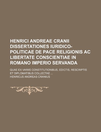 You are about to access our book library "Henrici Andreae Cranii Dissertationes iuridico-politicae de pace religionis ac libertate conscientiae in Romano Imperio servanda; quae ex variis ... edictis, rescriptis et diplomatibus collectae full version"