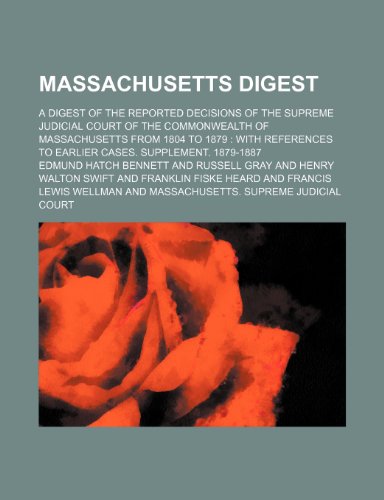 You are about to access our book library "Massachusetts digest; a digest of the reported decisions of the Supreme judicial court of the commonwealth of Massachusetts from 1804 to 1879 with references to earlier cases. Supplement. 1879-1887 full version"
