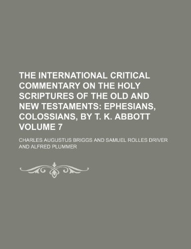 The International Critical Commentary on the Holy Scriptures of the Old and New Testaments; Ephesians, Colossians, by T. K. Abbott Volume 7 full version