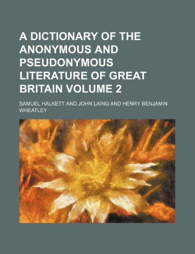 A Dictionary of the Anonymous and Pseudonymous Literature of Great Britain Volume 2 full version
